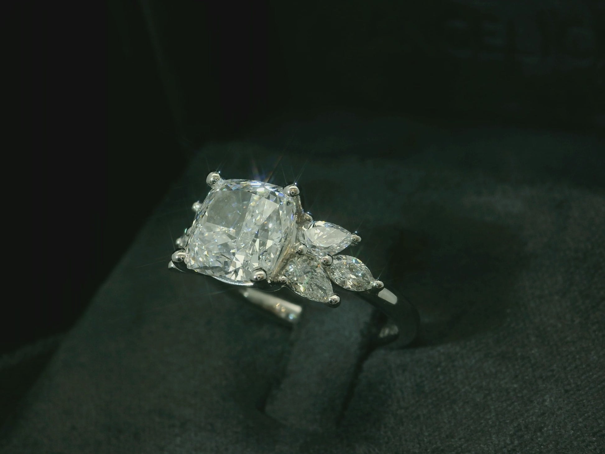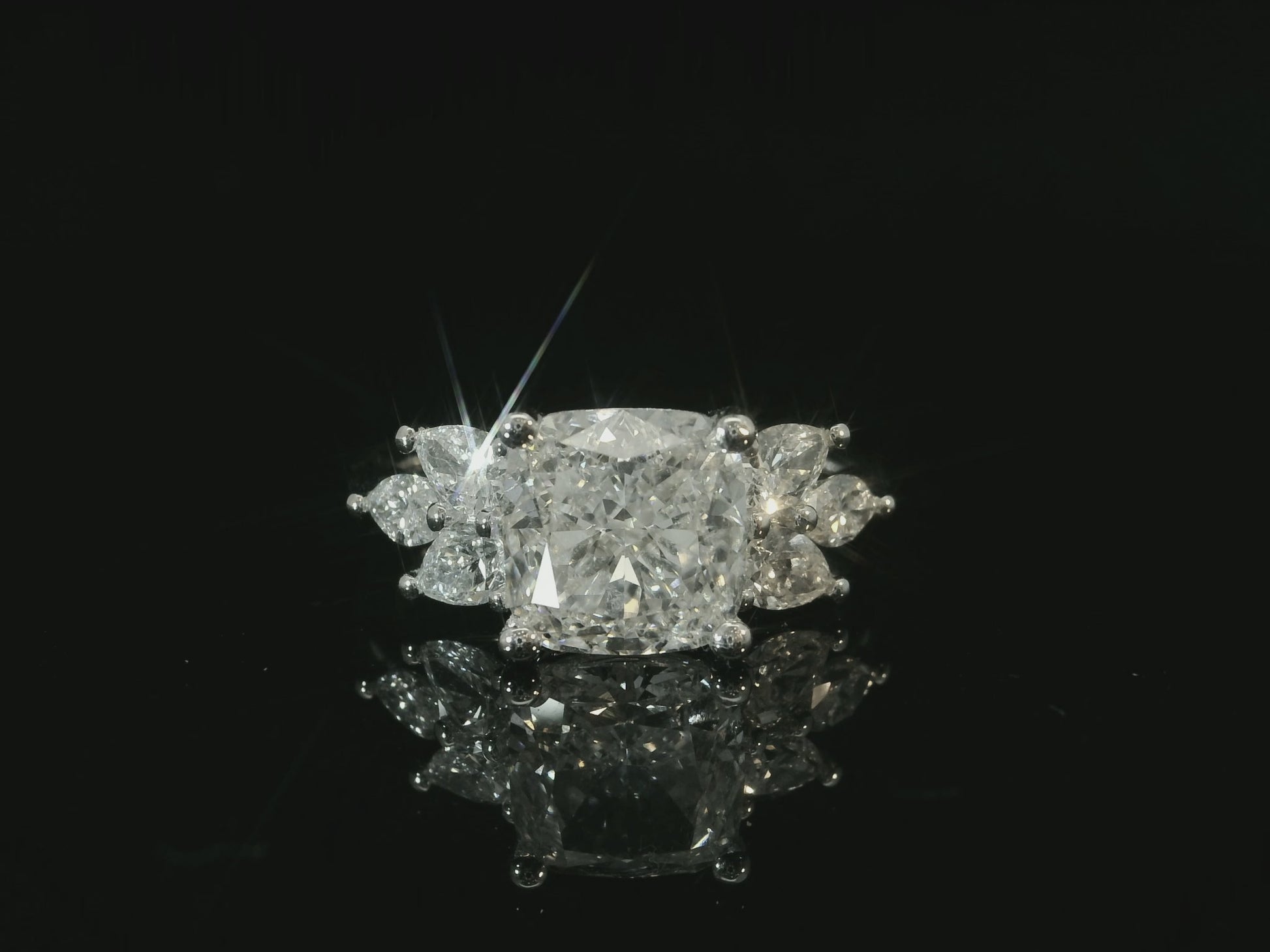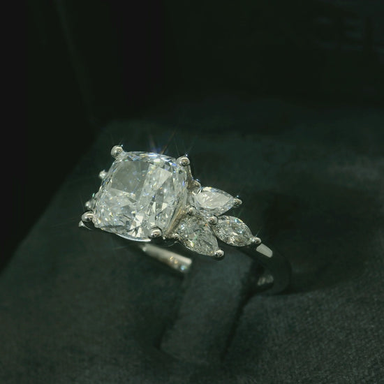 PLATINUM LAB DIAMOND CUSHION CUT ENGAGEMENT RING 3.87CT