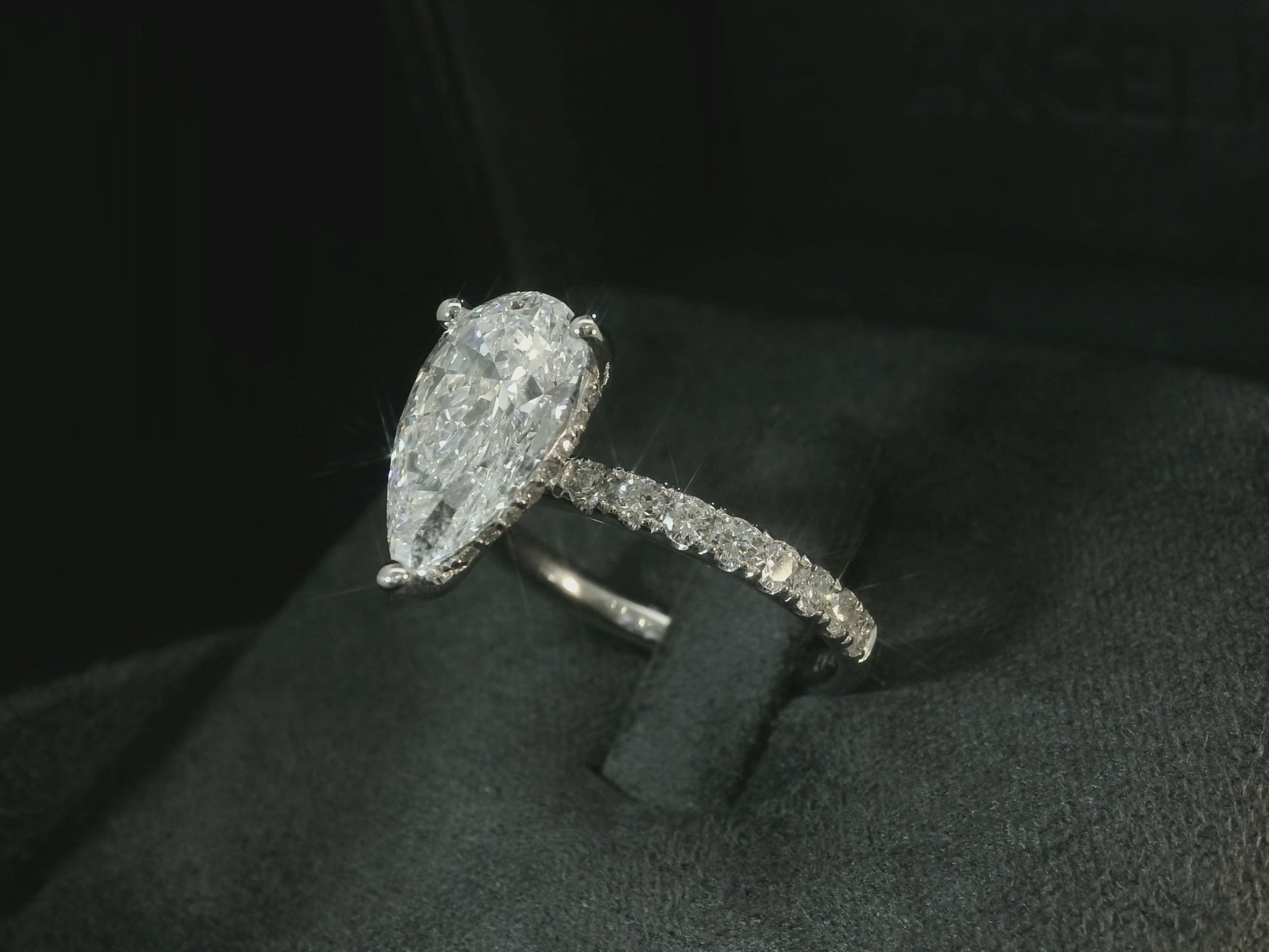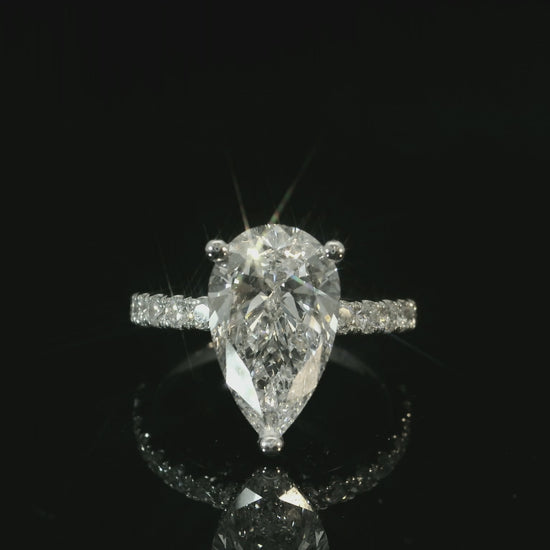 PLATINUM LAB DIAMOND PEAR SHAPE ENGAGEMENT RING 3.70CT