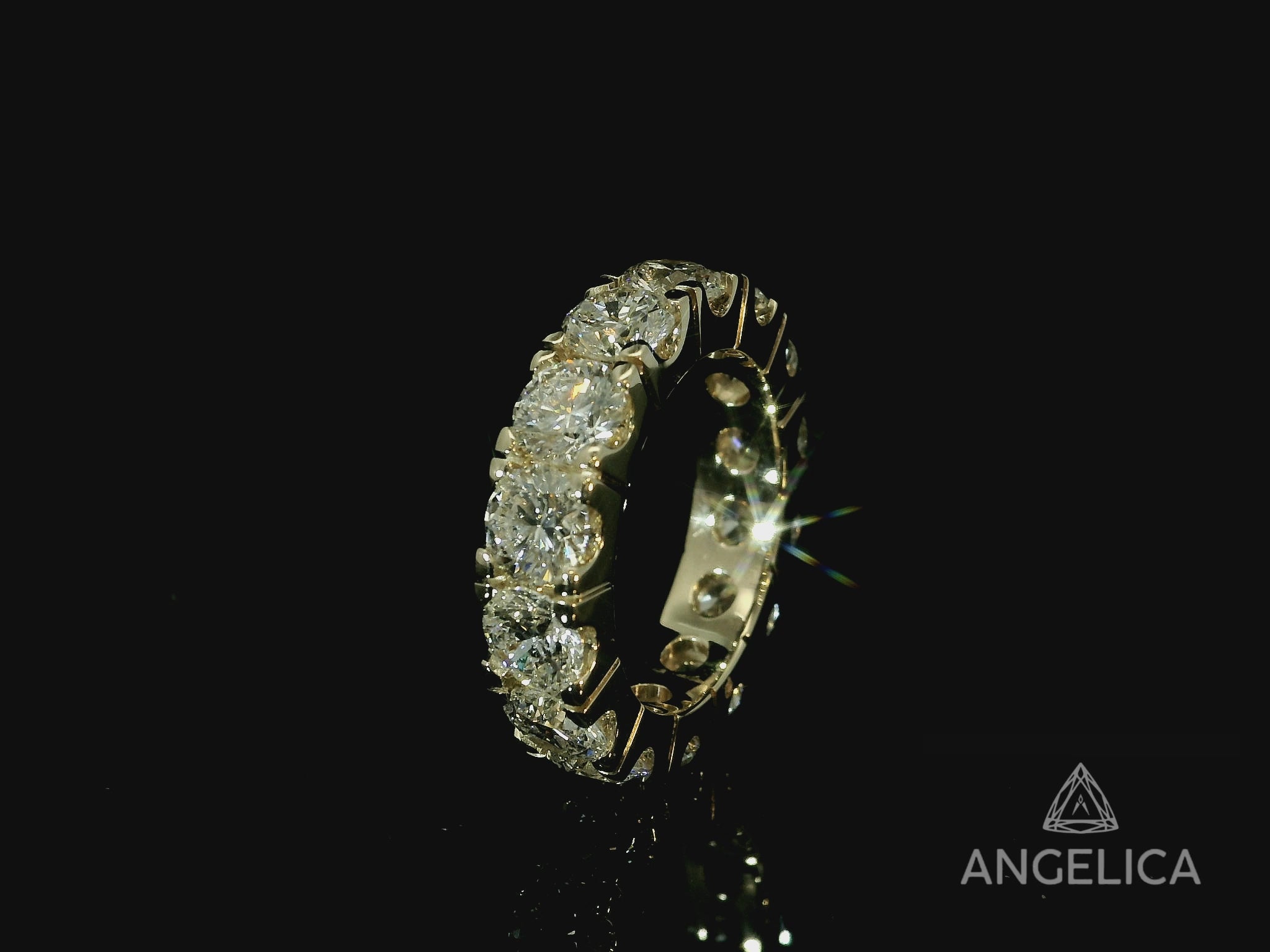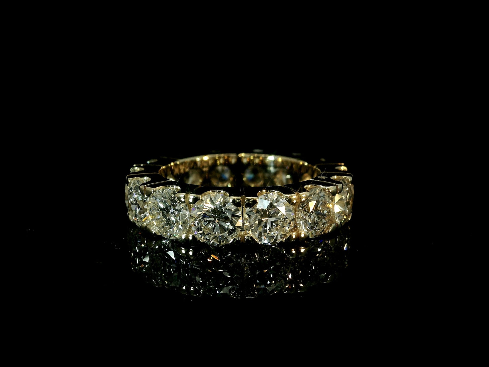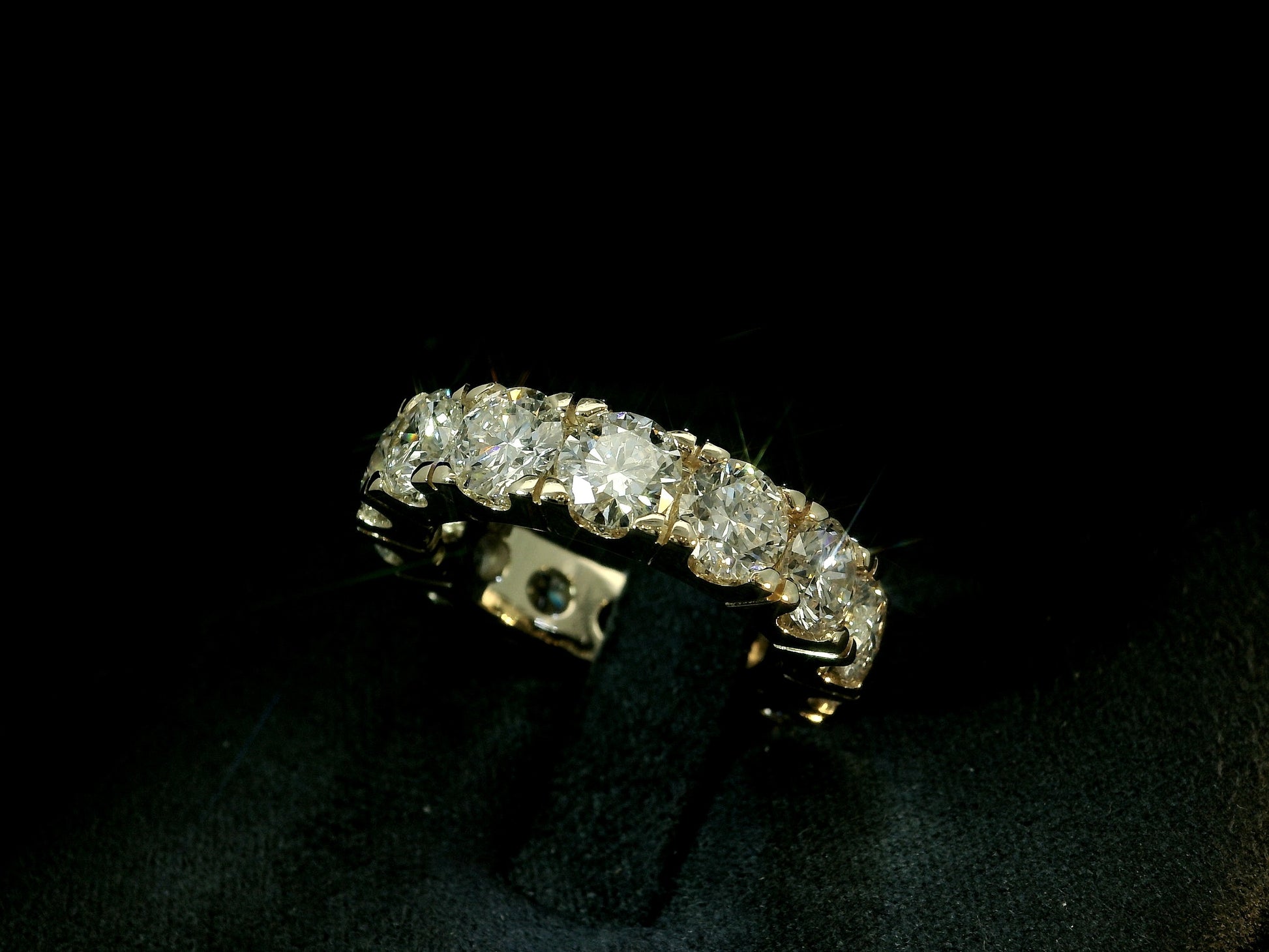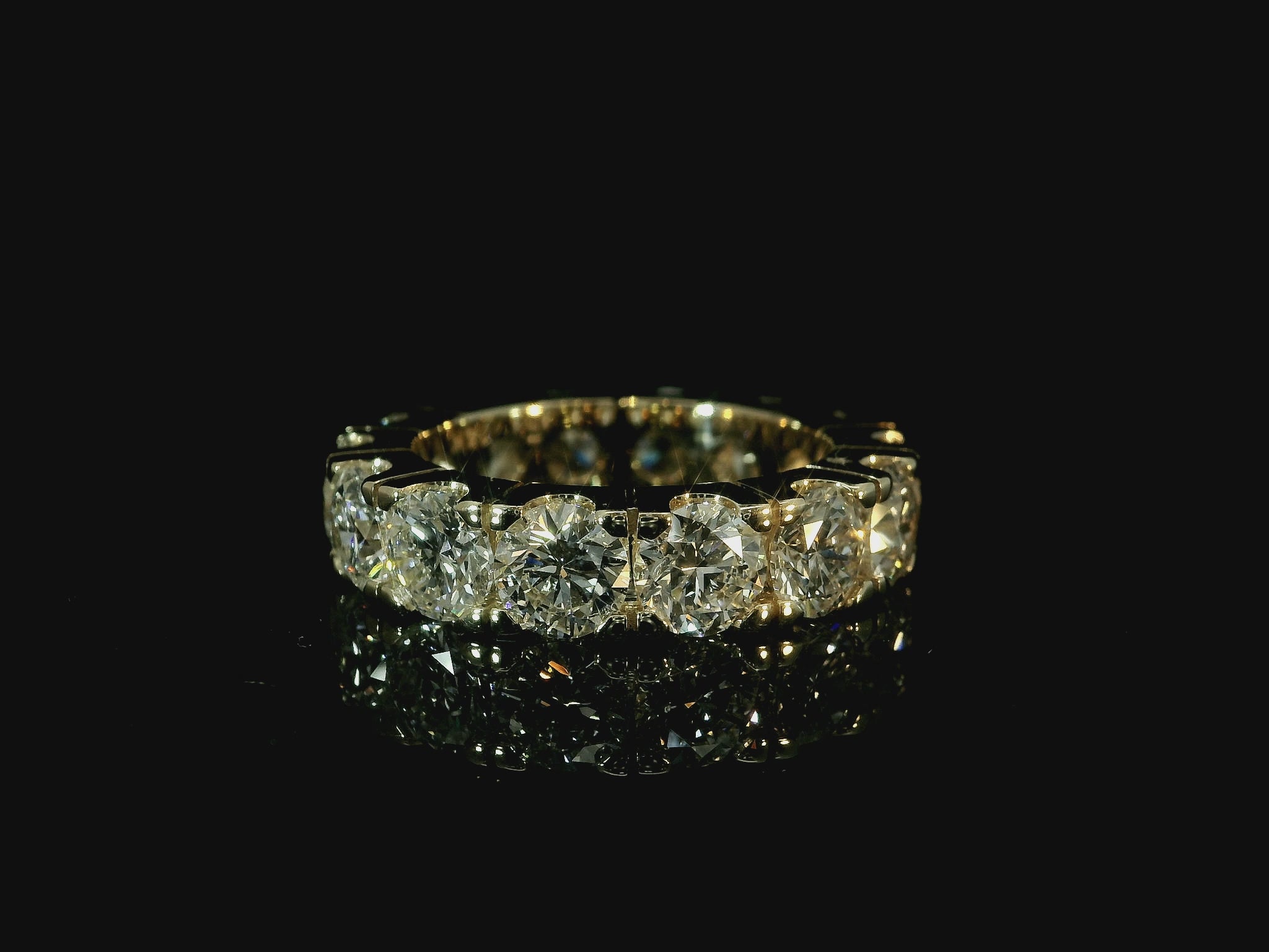 14K YELLOW GOLD BAND 7.10CT LAB DIAMONDS IN VVS-VS F+