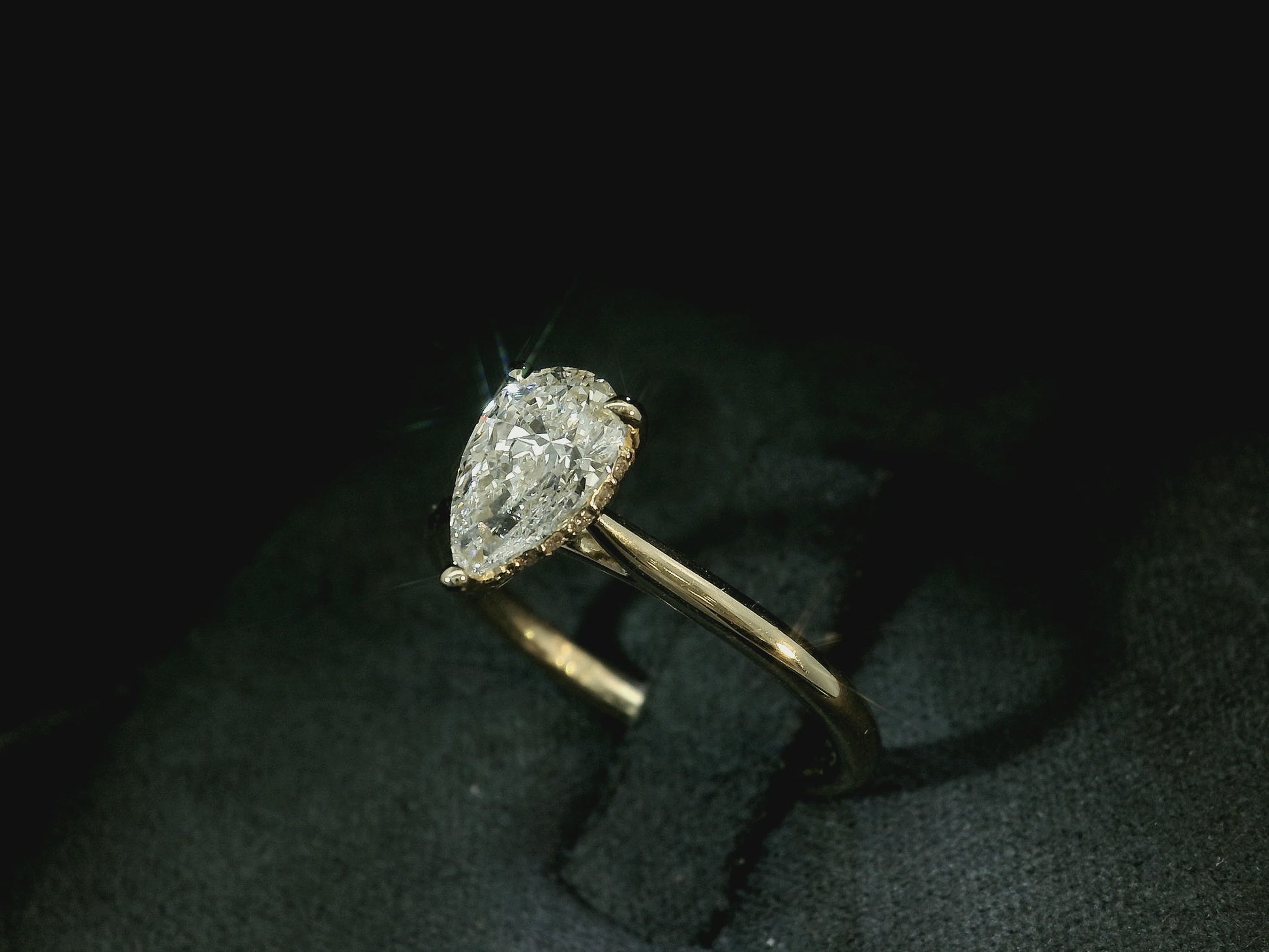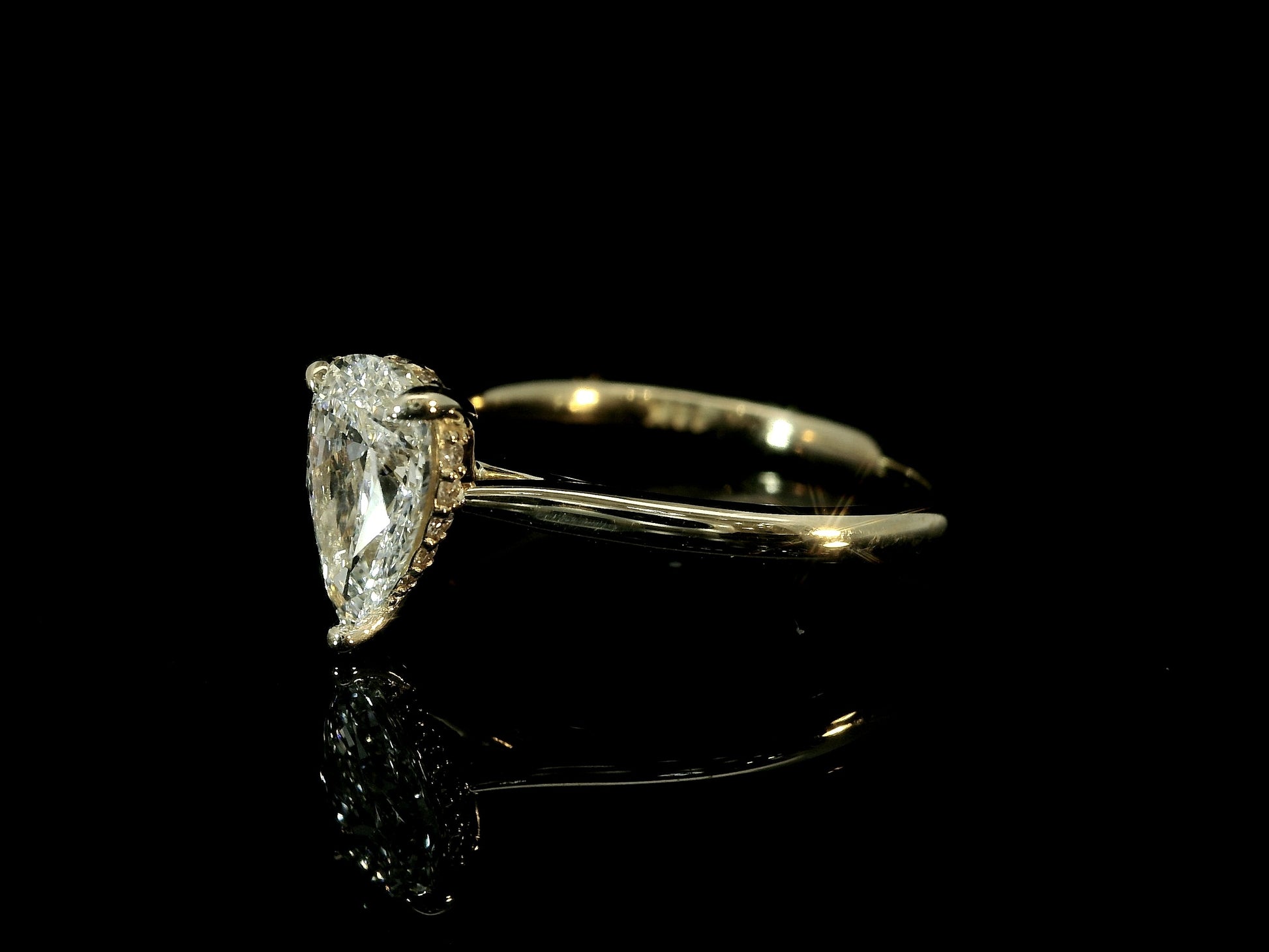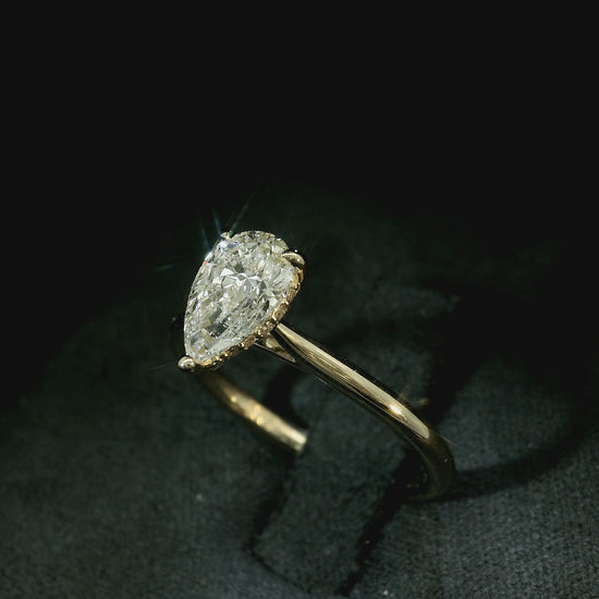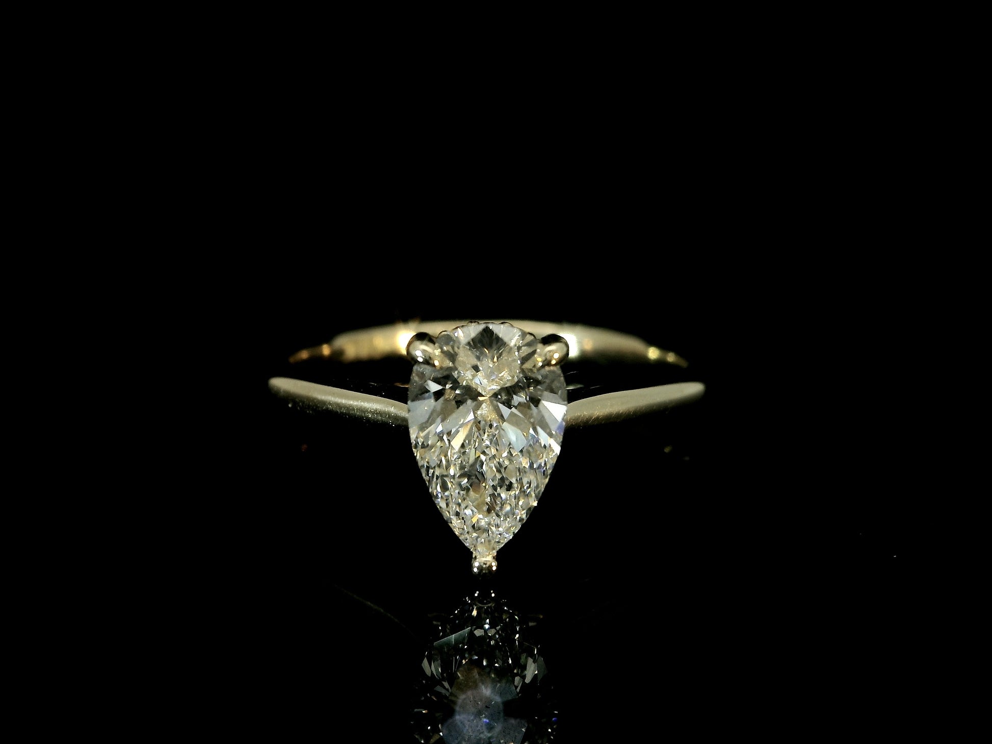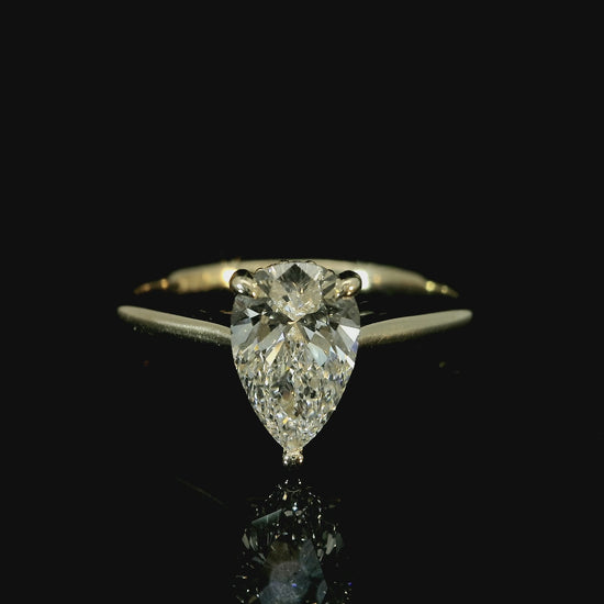 18K YELLOW GOLD LAB DIAMOND PEAR SHAPE ENGAGEMENT RING 1CT