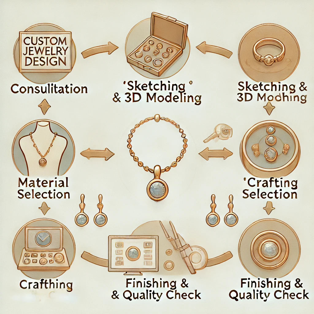 Custom jewelry is a collaborative process where a unique piece is designed specifically for the client. Here’s what the process typically looks like: