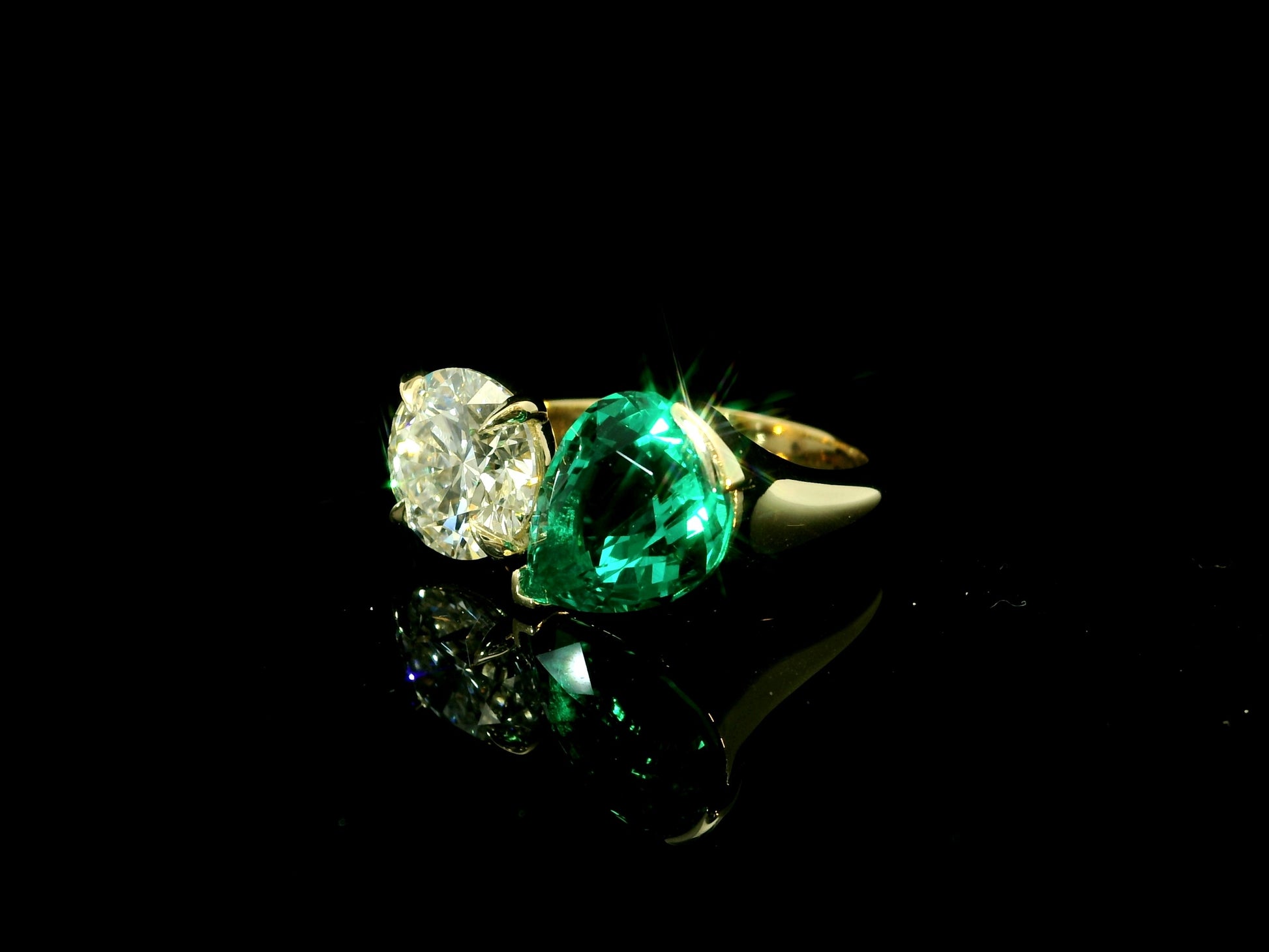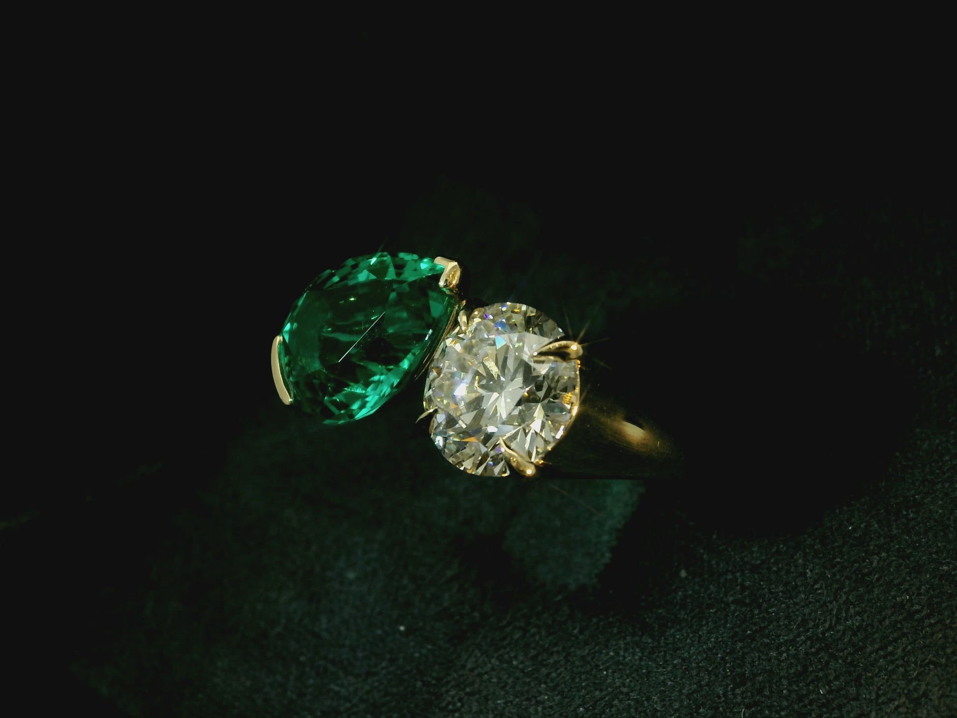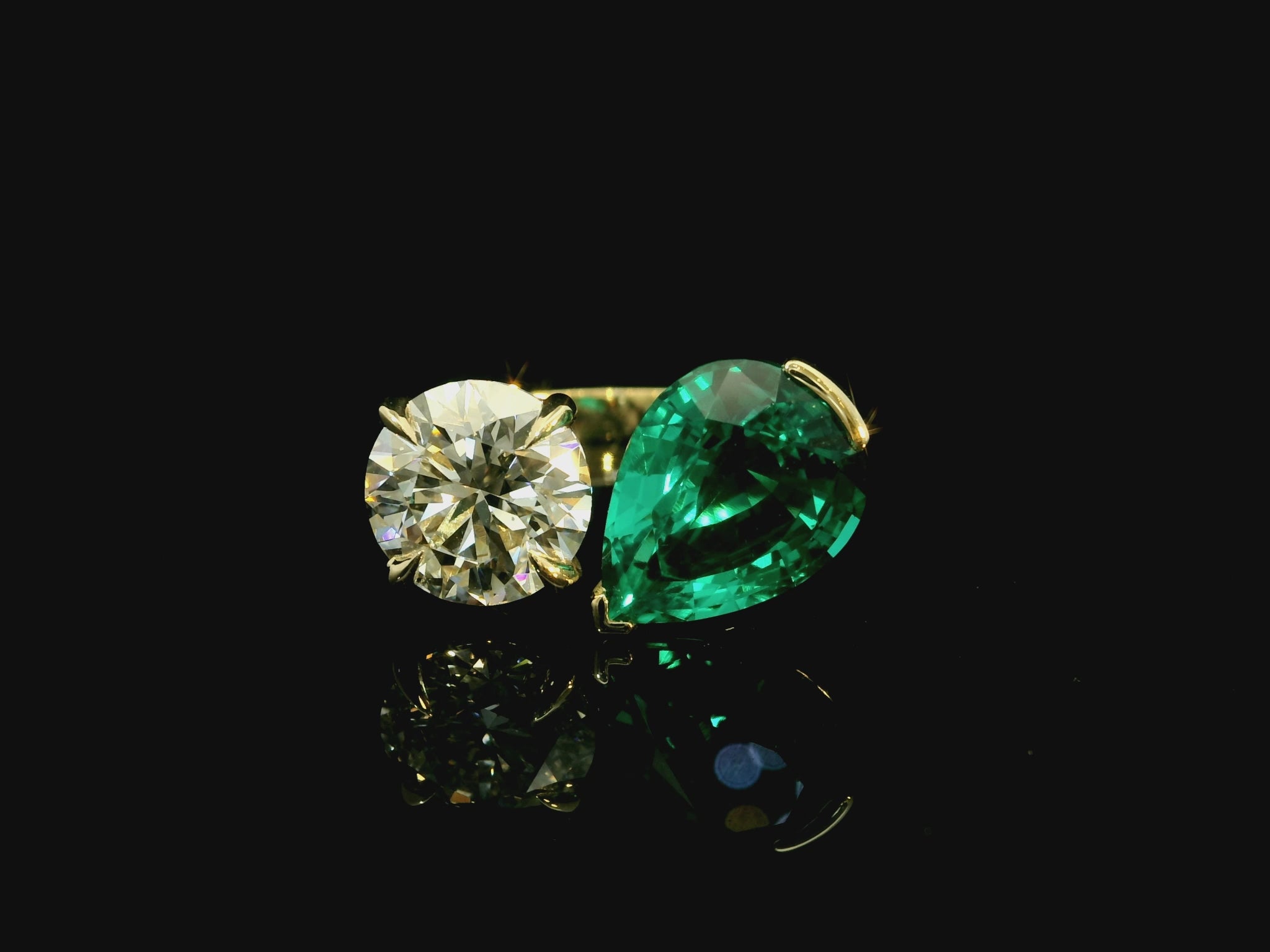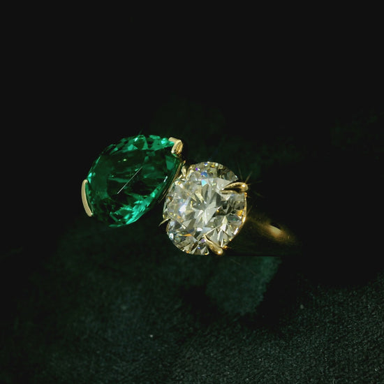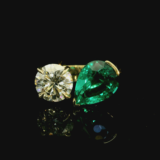 18K YELLOW GOLD LAB DIAMOND & EMERALD TOI ET MOI RING