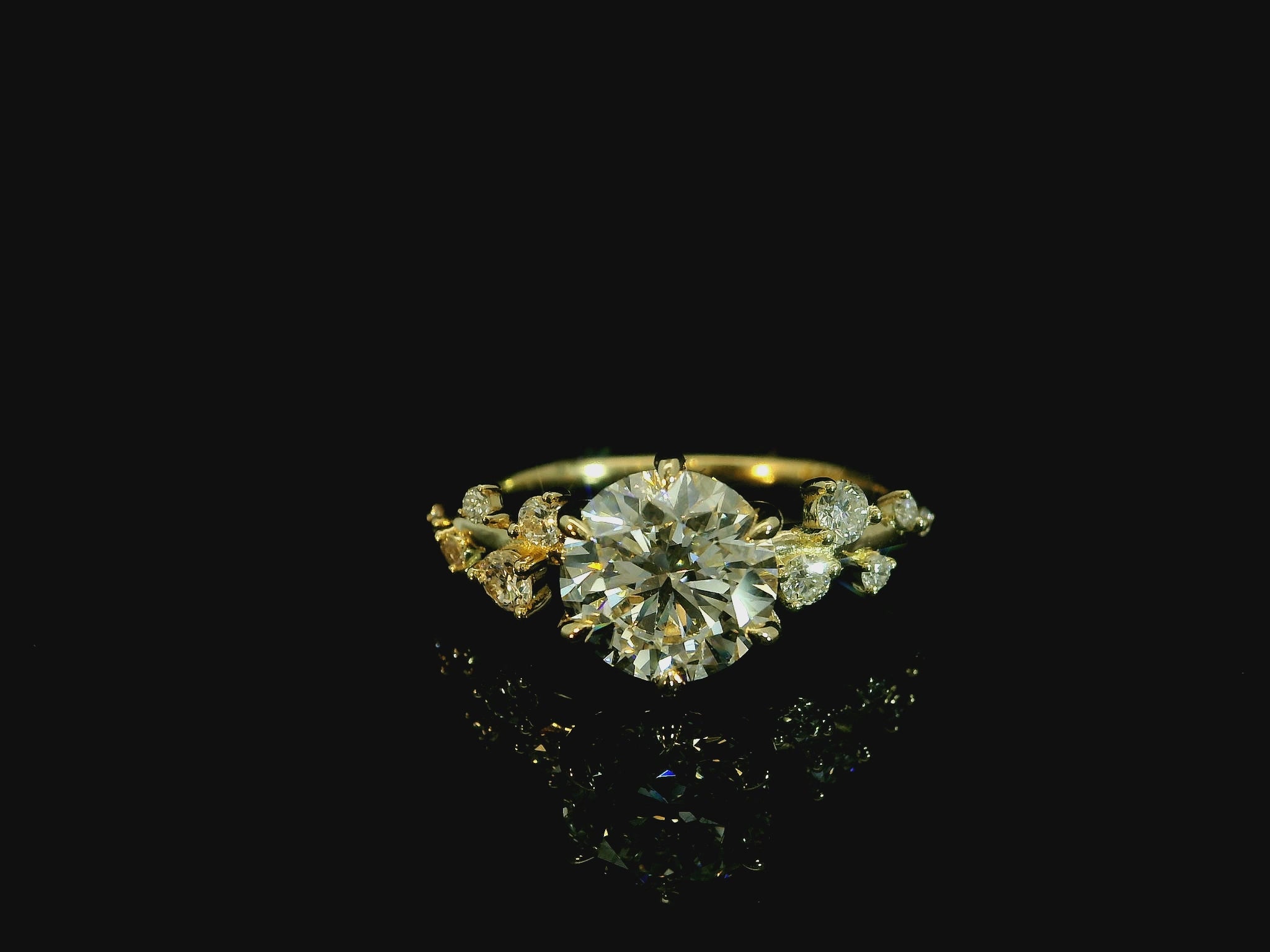 18K YELLOW GOLD LAB ROUND CUT ENGAGEMENT RING 1.95CT